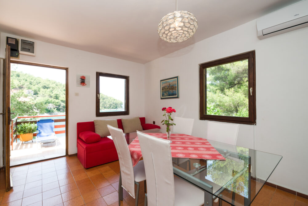 Apartment 100 is located in Sali, island Dugi otok – North Dalmatia. Sali is a small tourist town on the southern part of island Dugi otok. Apartment is situated in pinewood of the bay Sascica in the peripheral zone of Sali, near the rocky beach. The owners do not live in the same house.